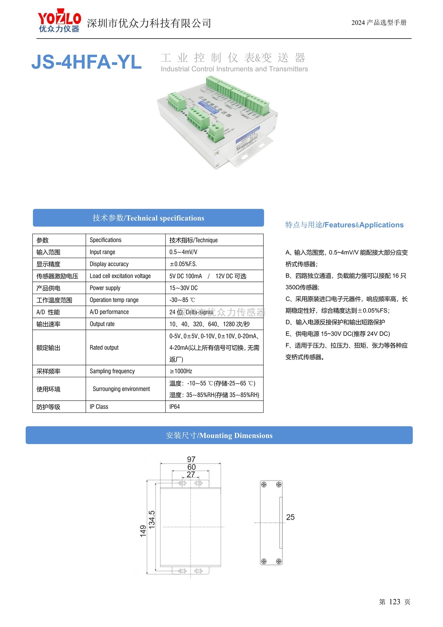 JS-4HFA变送器精度高,抗干扰能力强,可在各种工业恶劣环境下使用。用于称重.测力.重量.重力等传感器设计的高精度高可靠性多输出电压变送器。